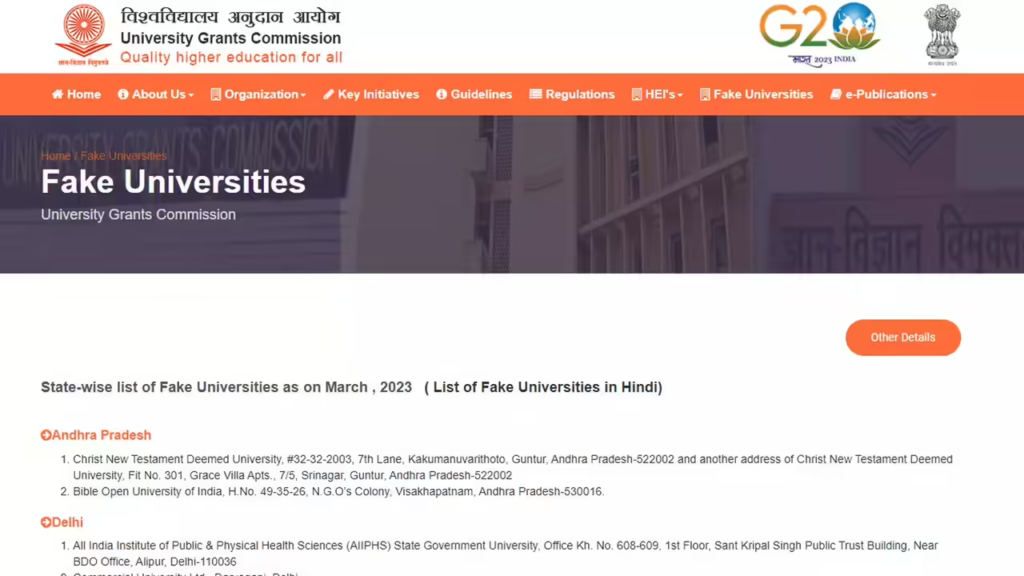 નકલી યુનિવર્સિટીઓની રાજ્યવાર યાદી તપાસવાનું ભૂલશો નહીં