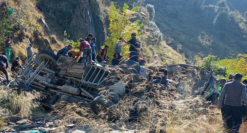 ઊંડી ખાઈમાંથી મૃતદેહો બહાર કાઢવામાં આવ્યા