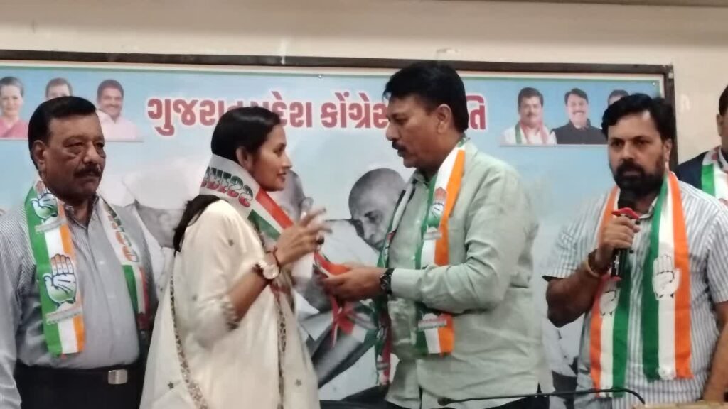 કોંગ્રેસના નેતા અમિત ચાવડાએ નિલમ શ્રીવાસ્તવને ખેસ પહેરાવીને કોંગ્રેસ પાર્ટીમાં આવકાર્યા કર્યા