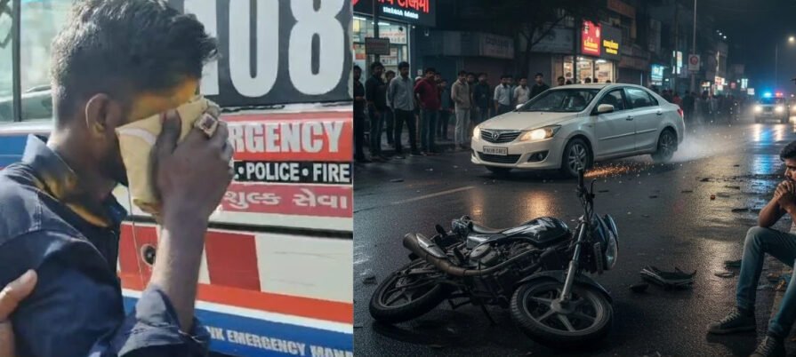 ઘટનાની મળતી માહિતી અનુસાર, રાજકોટ શહેરના ચુનારાવાડ ચોક વિસ્તારમાંથી પસાર થઈ રહેલી એક પૂર ઝડપે આવતી કારચાલકે સ્ટેયરિંગ પરથી કાબૂ ગુમાવ્યો હતો અને સામેથી આવી રહેલા બાઈક સવારને જોરદાર ટક્કર મારી હતી. આ ટક્કર એટલી પ્રચંડ હતી કે, બાઈક સવાર રોડ પર પટકાયો હતો. અકસ્માત સર્જાયા બાદ આસપાસના લોકો એકઠા થઈ જતાં, પકડાઈ જવાની બીકે કારચાલક પોતાનું વાહન ત્યાં જ છોડી નાસી છૂટ્યો હતો.