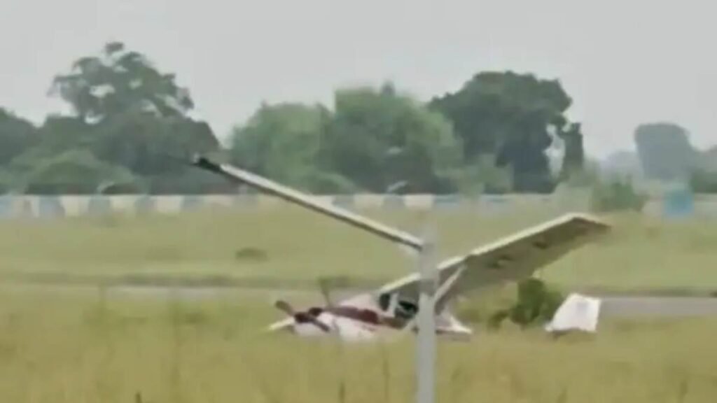 માહિતી અનુસાર, અમરેલી એરપોર્ટ પર ભારે વરસાદ અને પવનના કારણે વિઝિબિલિટી ઘટી ગઈ હતી. પ્લેન લેન્ડિંગ માટે એરપોર્ટની રનવે પર આવી રહ્યું હતું ત્યારે પાઇલોટે વિમાન પરનો કંટ્રોલ ગુમાવ્યો હતો. પરિણામે પ્લેન સીધું રનવે પરથી બહાર જતું રહ્યું અને એરપોર્ટની બહાર આવેલા ખુલ્લા મેદાનમાં ઘુસી ગયું. સદભાગ્યે જાનહાનિ થઈ નથી, પરંતુ એરક્રાફ્ટને નુકસાન થયું છે.