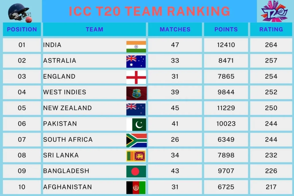 ICC T20 ઇન્ટરનેશનલ રેન્કિંગ જાહેર