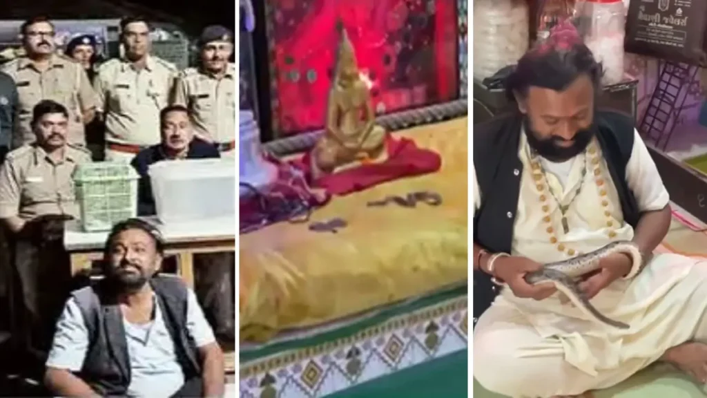 શિડયુલ ૨ના પ્રાણીઓ રાખવા ગુનો છે અને તેમાં ૬ મહિનાની સજાની જાેગવાઈ છે. મહંત મનુ મણીરામ દુધરેજીયા હાલ જામીન મુક્ત થયા છે. પરંતુ જરૂર પડશે તો વધુ તપાસ માટે પણ બોલાવવામાં આવશે. ખેતલા આપાનું મંદિર ધાર્મિક આસ્થા સાથે જોડાયેલું હોવાથી લોકો મંદિરે સાપ મૂકી જતા હોવાનું સામે આવ્યું છે. મહંત પણ સાપ પકડવાનું જાણતા હોવાનું પણ તપાસમાં સામે આવ્યું છે. હાલ આ અંગે તપાસ કરવામાં આવી રહી છે.