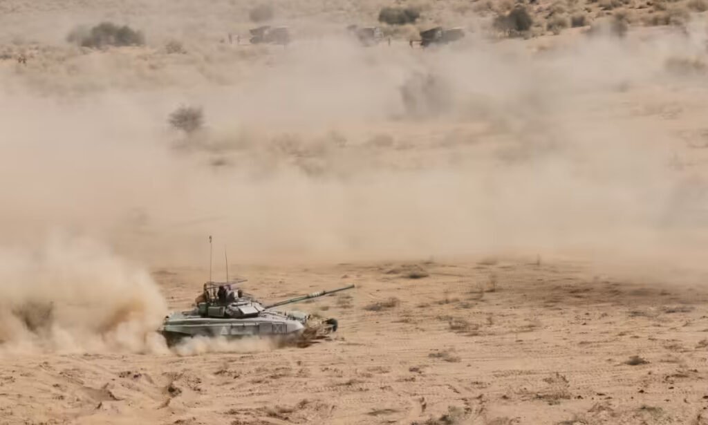 T-90 યુદ્ધ ટેન્ક, બોફોર્સ આર્ટિલરી સિસ્ટમનું પ્રદર્શન, K-9 વજ્ર સ્વ-સંચાલિત હોવિત્ઝરનું પ્રદર્શન સહિત AH-64 અપાચે એટેક હેલિકોપ્ટર, HAL ધ્રુવનું પ્રદર્શન યોજાયું હતું. રાજસ્થાનના પોખરણમાં ઘાતક ફાઈટર્સ પ્લેન દ્વારા એક યુદ્ધ જેવો જ માહોલ બનાવીને અભ્યાસ થયો. ઇન્ટિગ્રેટેડ એર કમાન્ડ એન્ડ કન્ટ્રોલ સિસ્ટમના માધ્યમથી આ વિસ્તારની હવાઈ રખેવાળી પણ કરાશે.