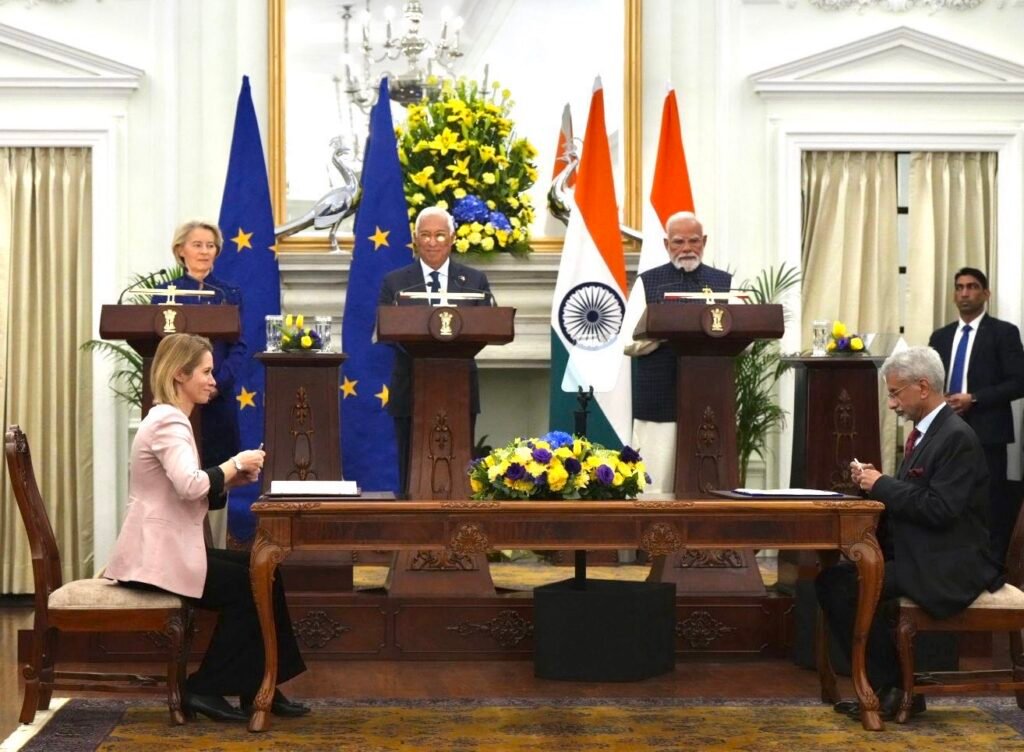 ભારત-યુરોપની સંયુક્ત પત્રકાર પરિષદમાં PM મોદીએ કહ્યું હતું કે, વિશ્વની બે સૌથી મોટી લોકશાહી શક્તિઓએ આજે નવો અધ્યાય સ્થાપિત કર્યો. છેલ્લા ઘણાં વર્ષોથી ભારત અને યુરોપ વચ્ચેના સંબંધો મજબૂત થઈ રહ્યા હતા. આજે આ સંબંધોને નવી ઊંચાઈ પ્રાપ્ત થઈ. ભારતે આજે વિશ્વના સૌથી મોટા ફ્રી ટ્રેડ એગ્રીમેન્ટ પર હસ્તાક્ષર કર્યા છે. આ એગ્રીમેન્ટ સમૃદ્ધિની નવી બ્લૂપ્રિન્ટ છે. ભારત અને યુરોપની આ ડીલ ઈન્ટરનેશનલ સિસ્ટમને સ્થિરતા અને મજબૂતાઈ આપશે. આ સિવાય અમે યુક્રેન, પશ્ચિમ એશિયા, ઈન્ડો-પેસિફિક સહિતના વૈશ્વિક મુદ્દાઓ પર વિસ્તૃત ચર્ચા કરી.