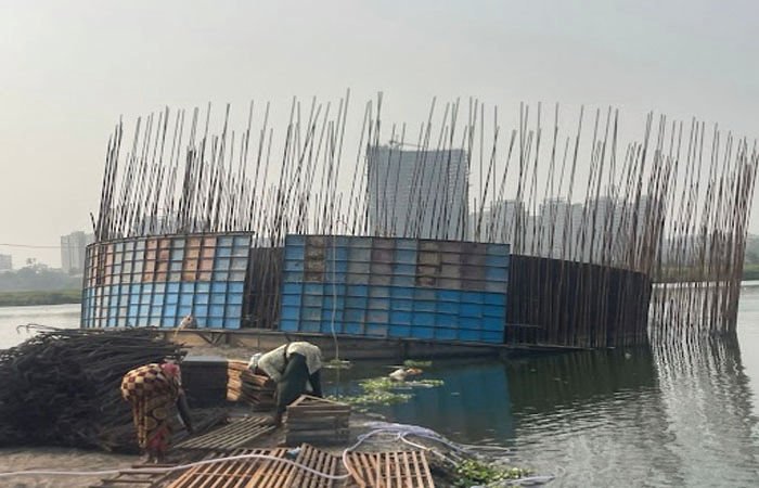 સુરત શહેરની પાણીની જરૂરિયાતને ધ્યાને રાખીને પાલિકા દ્વારા તાપી નદીમાં ઈન્ટેકવેલની કામગીરી કરવામાં આવી રહી છે. સરથાણા વિસ્તારમાં આ કામગીરી ચાલી રહી છે ત્યારે પાલિકાના વિપક્ષે એક તરફનો ભાગ નમી ગયો છે અને આ ઈન્ટેકવેલના સ્ટ્રકચરને તાત્કાલિક ચેક કરવા માટેની માંગણી કરી છે. જોકે, પાલિકા તંત્રએ એવો દાવો કર્યો છે કે આ નદીમાં થતી કામગીરી છે અને પાણીના વહેણના કારણે ઘણી વખત માટી કે રેતી ઉપર નીચે થાય છે તેથી આવું થઈ શકે છે. આ ટેકનીકલ છે તેથી લેવલ કરવામાં આવશે કોઈ મોટો ઈસ્યુ નથી.