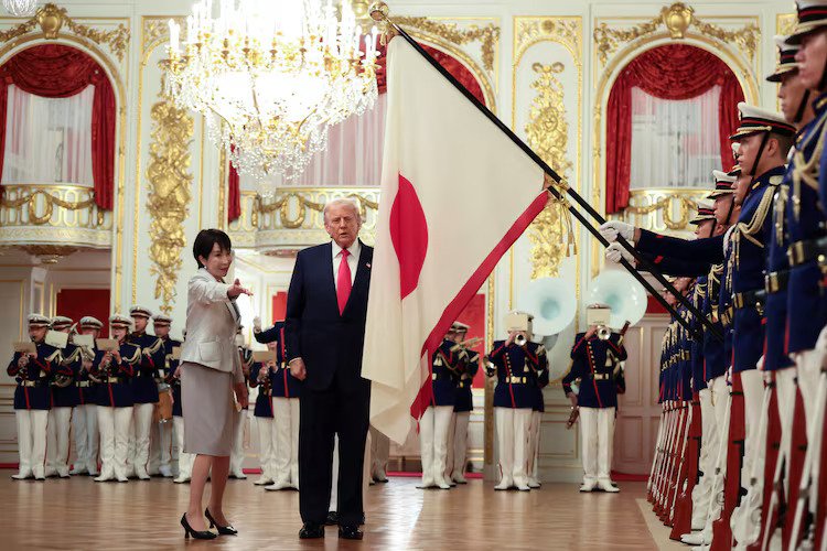 જાપાનના વડાંપ્રધાન સાને તાકાઈચીએ તેમને દોરવણી આપતાં જોવા મળ્યા હતાં. સોશિયલ મીડિયા પર આ વીડિયો ઝડપથી વાઈરલ થઈ રહ્યો છે. વાત કરીએ તો ટ્રમ્પ ત્રણ દિવસીય જાપાન મુલાકાતે છે. જાપાનના નવા વડાંપ્રધાન સાને તાકાઈચીની હાજરીમાં ટોક્યોમાં ગાર્ડ ઑફ ઑનરની સાથે તેમનું સેરેમોનિયલ વેલકમ કરવામાં આવ્યું હતું. પરંતુ તેમને અંદાજ ન હતો કે, સેરેમોનિયલ વેલકમ દરમિયાન એક હેડ ઑફ સ્ટેટ કેવી રીતે વર્તે છે. જેના લીધે તેમની ચાલવાની ઢબ અને વર્તનની સોશિયલ મીડિયા પર હાંસી ઉડી રહી છે.