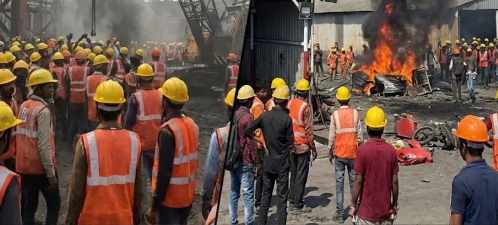 હજીરામાં L&T કર્મચારીઓનો ઉગ્ર વિરોધ